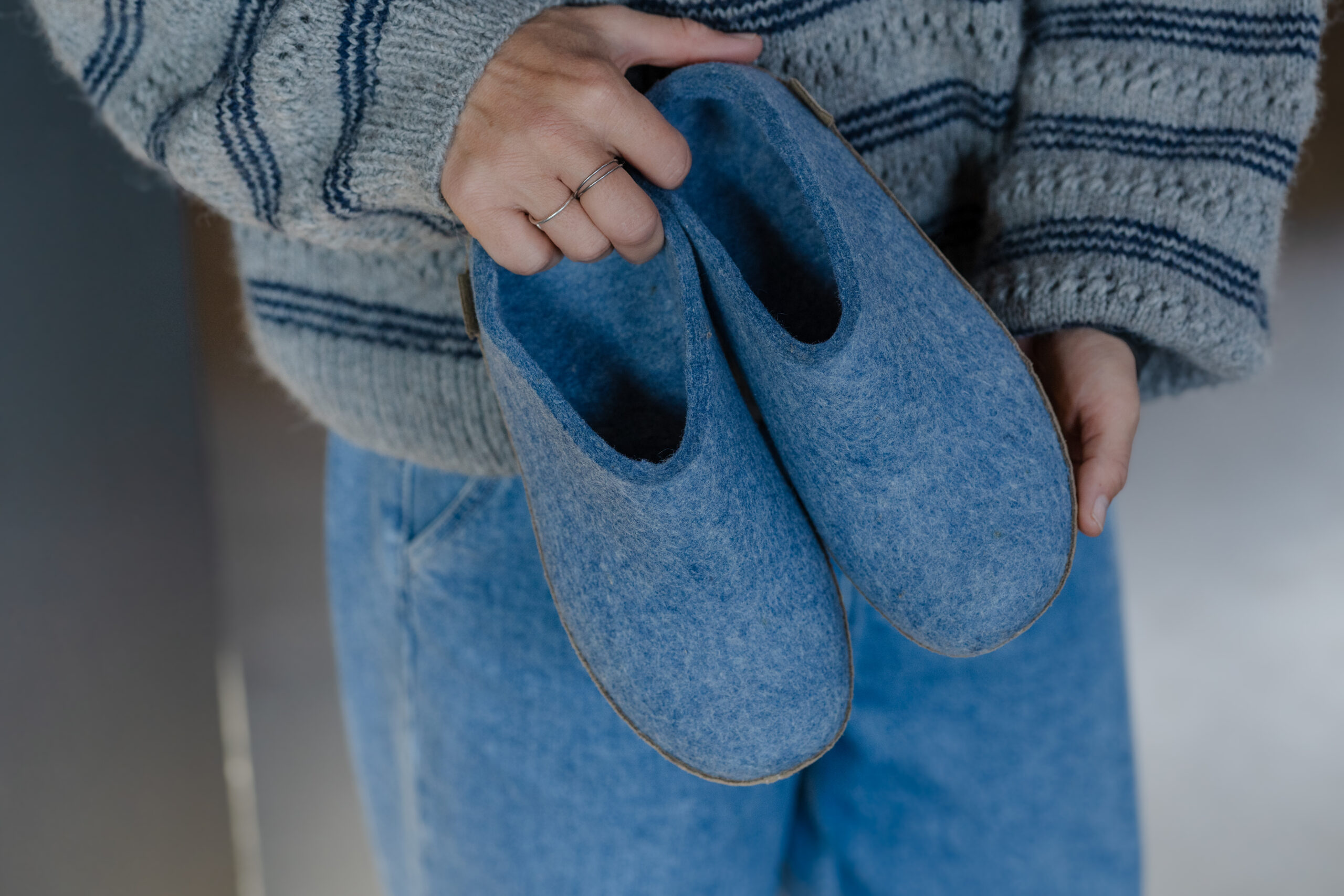De Glerups pantoffels vormen zich vanzelf naar de contouren van je voeten. Het natuurlijke wolmateriaal is warm, veerkrachtig en voelt het prettigst zonder sokken, zodat de warmte optimaal behouden blijft. Het voetbed bestaat uit een dubbele laag vilt, waardoor elke stap zacht en ondersteunend aanvoelt – perfect voor lange winterdagen in huis.